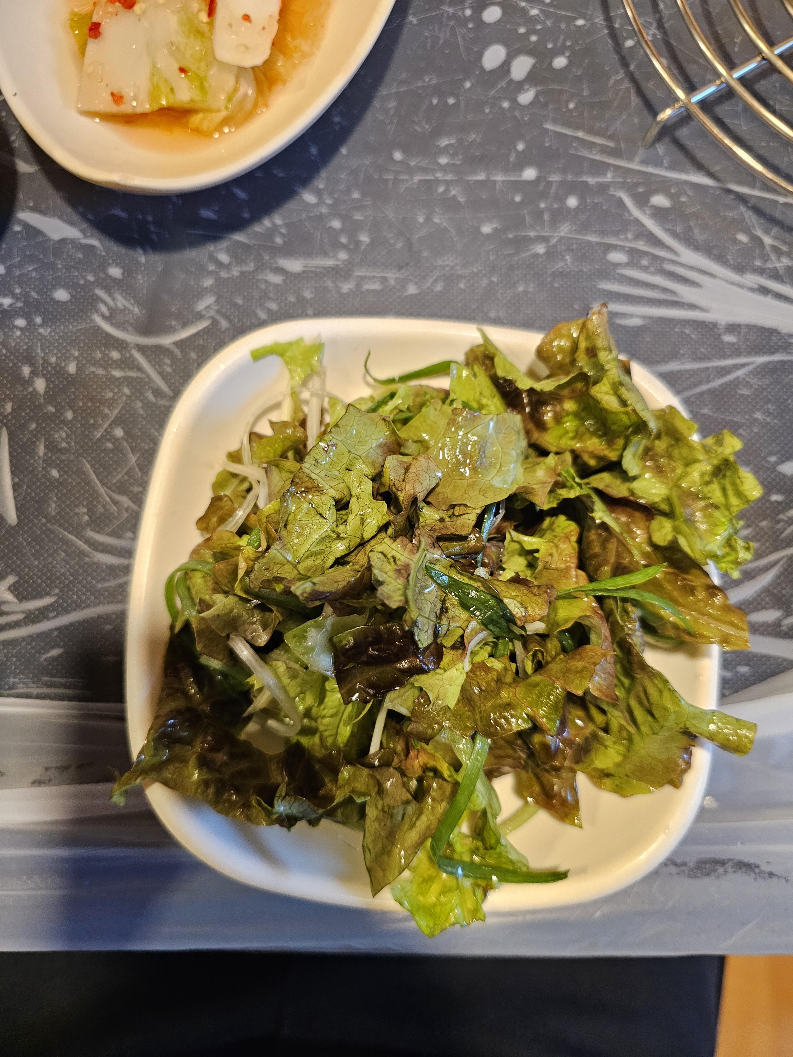 고기는 간이 과하지 않고 적절하게 배어 있어 감칠맛이 좋고, 부드러운 식감이 일품입니다. 소갈비는 은은한 단짠 맛이 느껴지며, 돼지갈비는 약간 달달한 풍미가 돋보입니다. 다만 돼지갈비는 지방이 조금 많아 개인에 따라 선호가 갈릴 수 있지만, 고기의 맛 자체는 충분히 만족스러웠습니다. 식사를 하다 보니 사진을 많이 남기지 못할 정도로 먹는 데 집중하게 되는 맛이었습니다.