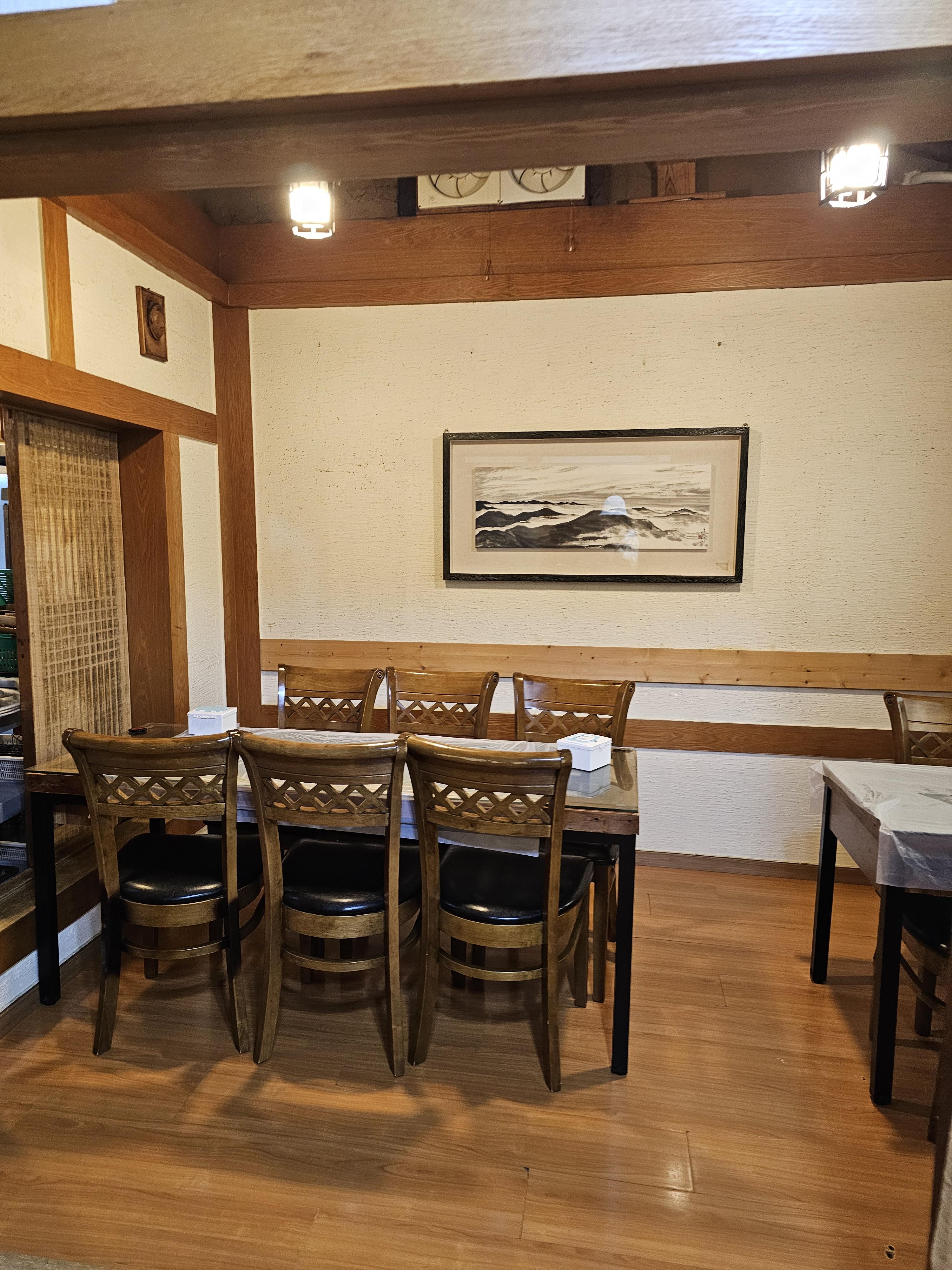시장 속에서 한옥과 큰 나무가 어우러진 공간은 전통적인 한국의 정취를 느끼게 해 줍니다. 입구에 들어서면 푸릇한 식물들이 가득해 상쾌한 느낌을 주고, 나무와 한옥의 조화가 식사를 기다리는 동안 마음을 차분하게 만들어 줍니다. 내부의 깔끔하고 정갈한 분위기는 방문객들의 시선을 사로잡기에 충분합니다.